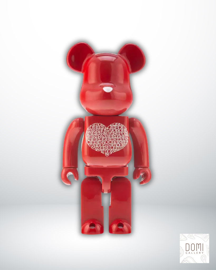 Il motivo “International Love Heart” avvolge interamente la superficie del Be@rbrick, trasformando l’orsetto in una scultura grafica dal forte impatto visivo. Il cuore centrale, accompagnato da scritte multilingue, diventa un simbolo universale di amore, connessione e cultura globale.